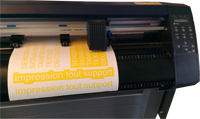 Les caractères ou sujets sont découpés dans un vinyl résistant et disposer sur un support lisse (carrosserie, panneau de tout type, vitrine, etc...).